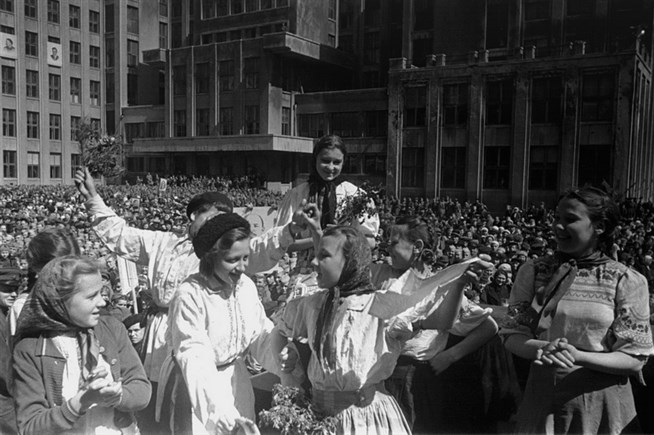На улицах Минска в праздник Победы. 10 мая 1945 года. Снимок Эммануила Евзерихина.