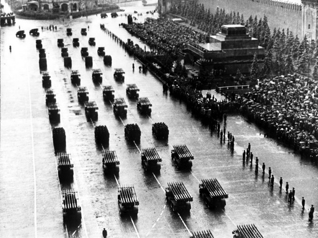 Парад Победы на Красной площади 24 июня 1945 года. Катюши. Снимок Марка Редькина.