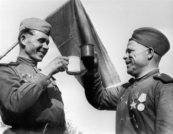 Тост за Победу и за боевых товарищей. Берлин. Май 1945 года.