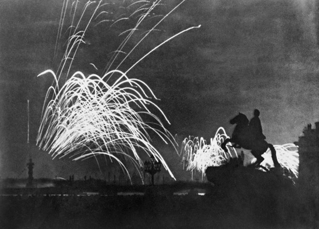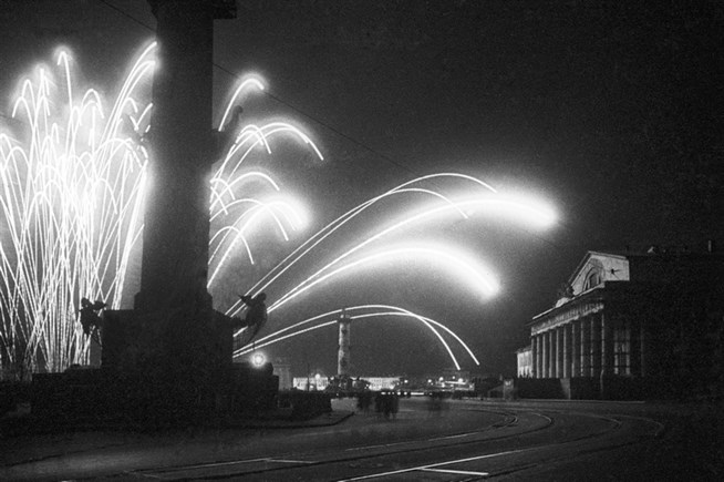 Cалют Победы в Ленинграде. 9 мая 1945 года. Снимик В. Капустина, Я. Ярина.