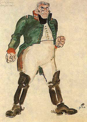 «Городничий Сквозник-Дмухановский». Эскиз костюма к спектаклю по пьесе «Ревизор». Художник М.В. Добужинский.