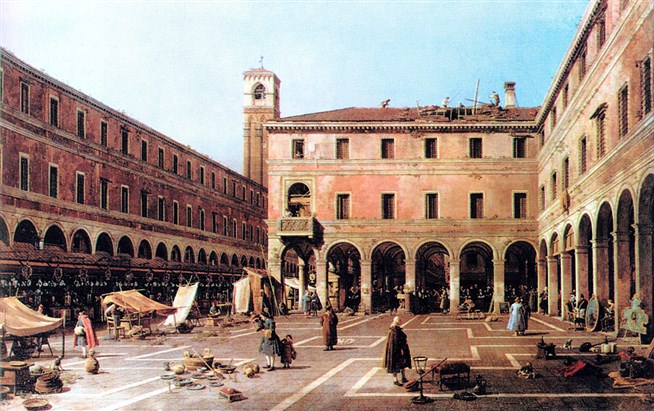 Каналетто. Кампо ди Риальто. 1758-1763 годы. Холст, масло. Государственные музеи, Берлин.