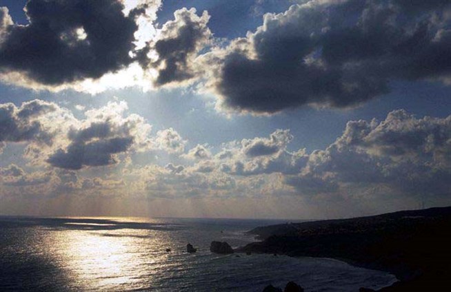 Скала Афродиты в лучах заходящего солнца. Закат. Иллюстрация предоставлена Кипрской Организацией по Туризму.