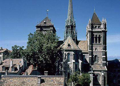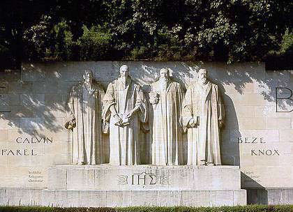 Женева. Стена Реформации. Статуи Фареля, Кальвина, Беза и Нокса.