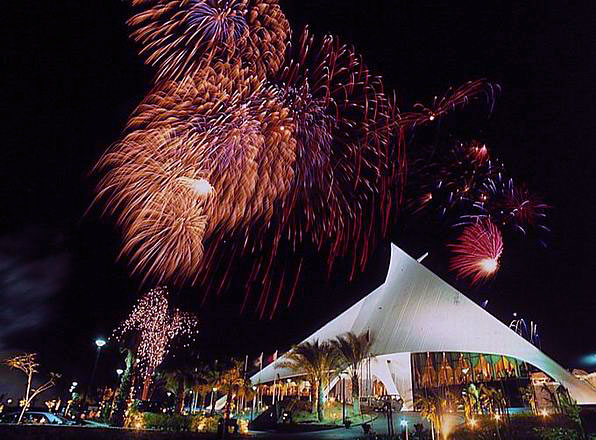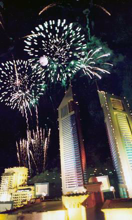 Ночной фейерверк над «Дубай-Крик» гольф- и яхт-клуб (Creek Golf Club). Иллюстрация предоставлена департаментом туризма и коммерческого маркетинга Эмирата Дубай в России.