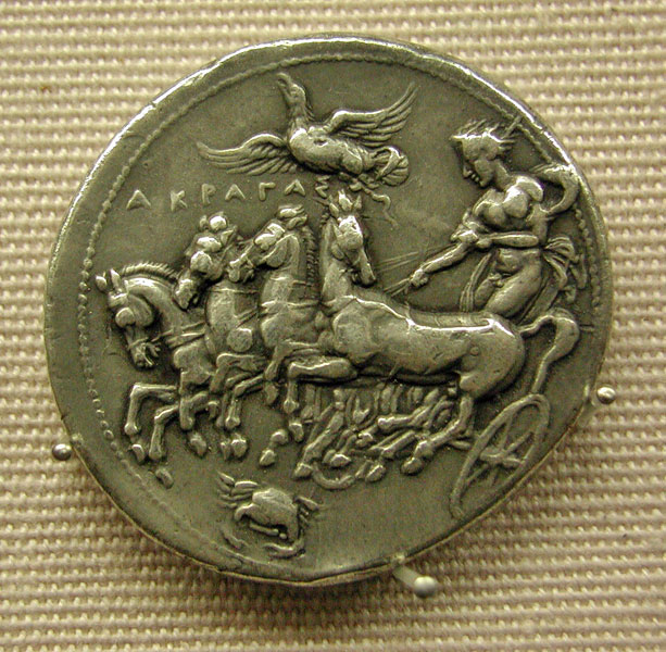 Монета с изображением колесницы. Серебро. Сицилия. Около 410 г. до н.э.