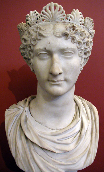 Агриппина Младшая. Предположительно скульптура изображает члена римской императорской семьи — Агриппину Младшую (Agrippina minor) — сестру императора Калигулы. Рим. 2 четверть 1 в. н.э.