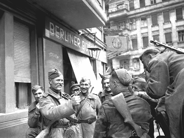 Советские солдаты на улицах Берлина. Май 1945 года.