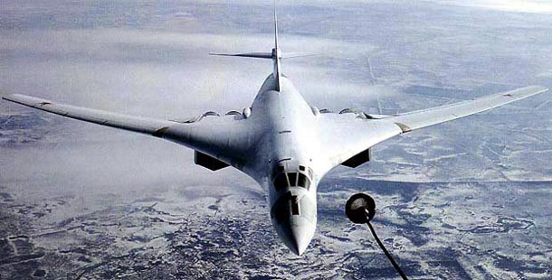 Стратегический ракетоносец-бомбардировщик Ту-160. Предназначен для поражения ядерным и обычным оружием наиболее важных объектов в удаленных географических районах и в глубоком тылу континентальных театров военных действий. Первый полет Ту-160 «70-01» состоялся в декабре 1981, в октябре 1984 в воздух поднялся самолет «70-03», имеющий полный комплект оборудования серийного бомбардировщика, тогда же начались испытания и первого самолета, собранного Казанским АПО им. Горбунова. В августе 1986 из ворот сборочного цеха в Казани вышла четвертая серийная машина, ставшая первой строевой. Всего в летных испытаниях было задействовано в общей сложности восемь самолетов двух опытных серий.В ходе государственных испытаний, завершившихся в середине 1989, с Ту-160 было выполнено четыре пуска крылатых ракет Х-55 - основного вооружения самолета. Была достигнута максимальная скорость горизонтального полета 2200 км/ч, однако в ходе эксплуатации скорость была ограничена до 2000 км/ч, что было обусловлено требованиями сохранения ресурса.
