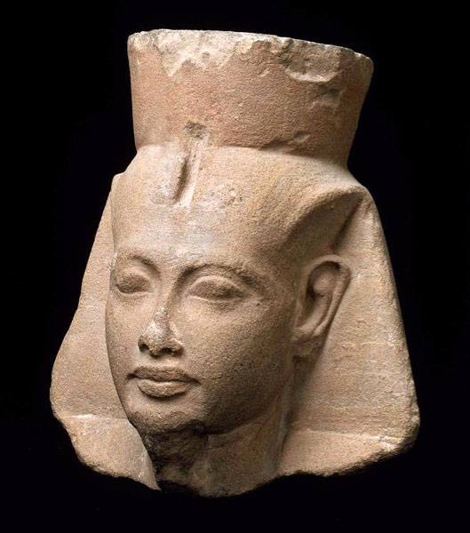 Голова Тутанхамона. Древний Египет, Новое царство, 18-я династия, царствование Тутанхамона, 1336-1327 до н.э. Скульптура. Песчаник. Высота 29, 6 см.