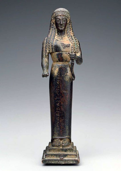 Статуэтка богини Артемиды. Древняя Греция, Лаконика, архаический период, ок. 530-520 до н.э. Высота 19, 2 см. Бронза.