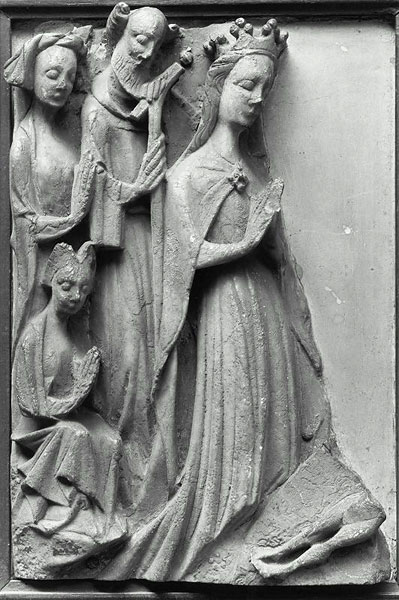 Неизвестный автор. Мария и Иосиф, преклоняющие колени перед Сыном. Европа, 15 в. Каменный рельеф.