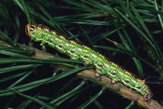 Гусеница соснового бражника (Sphinx pinastri). © Corel Professional Photos