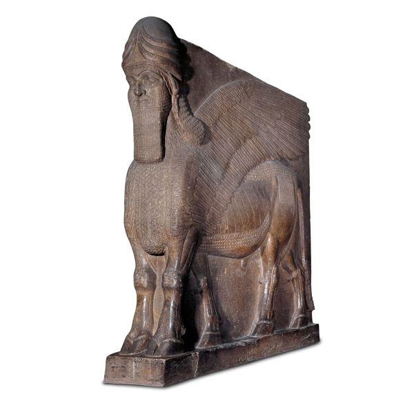 Крылатый лев с человеческой головой.Такие львы располагались по сторонам порталов дворца ассирийского царя Ашшурнасирпала II. Когда зритель проходил ворота, дополнительная пятая нога создавала иллюзию шага животного по направлению к входящему. Ассирия, 883-859 гг. до н.э.