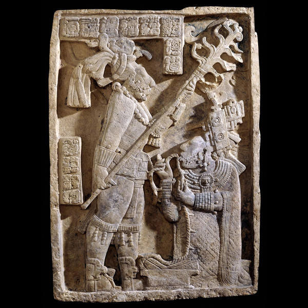 Известняковая плита, располагавшаяся над дверным проемом с изображением ритуала кровопускания. Культура народов майя, Мексика, 600-900 гг.