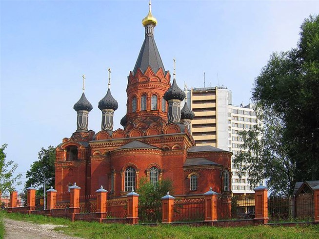 Брянск. Спасо-Гробовская церковь. Нынешнее здание построено в начале 20 века. Купола и колокольня восстановлены в 1980-е годы. Фото А. Карпова.
