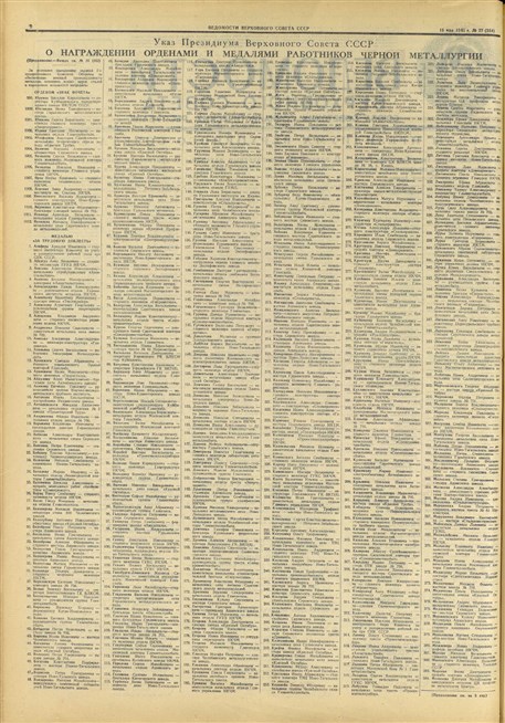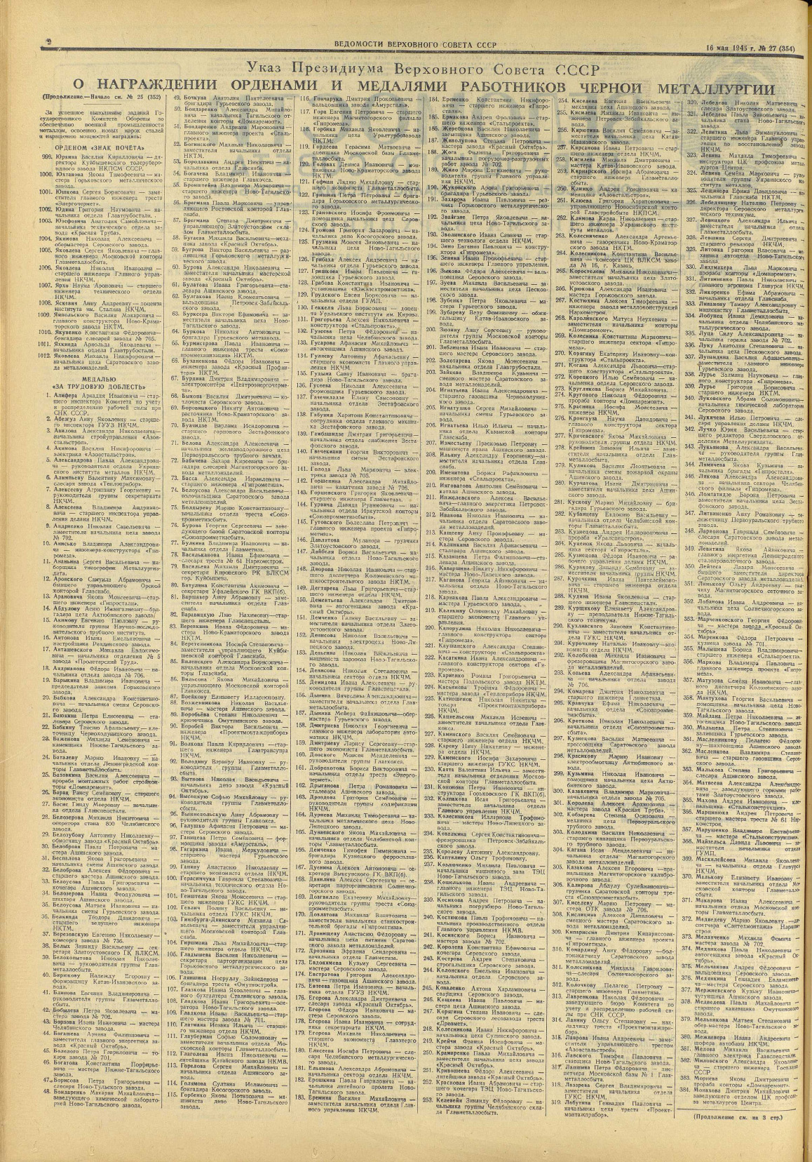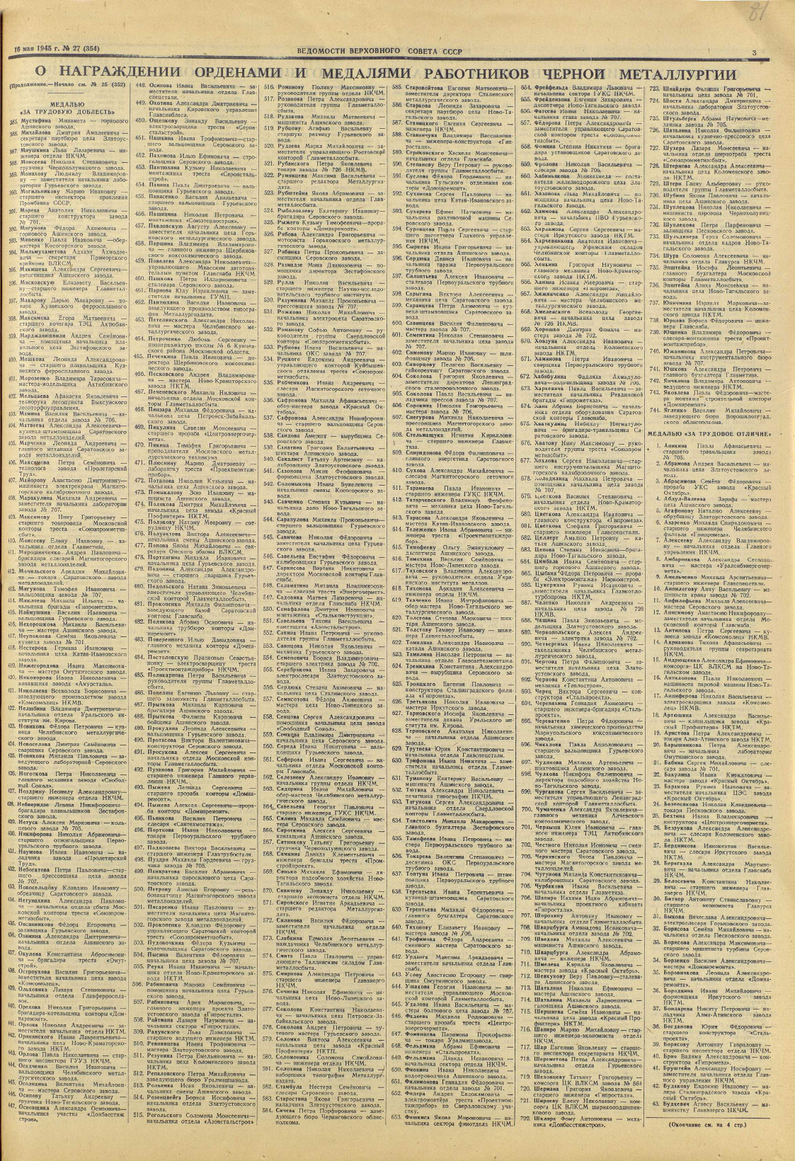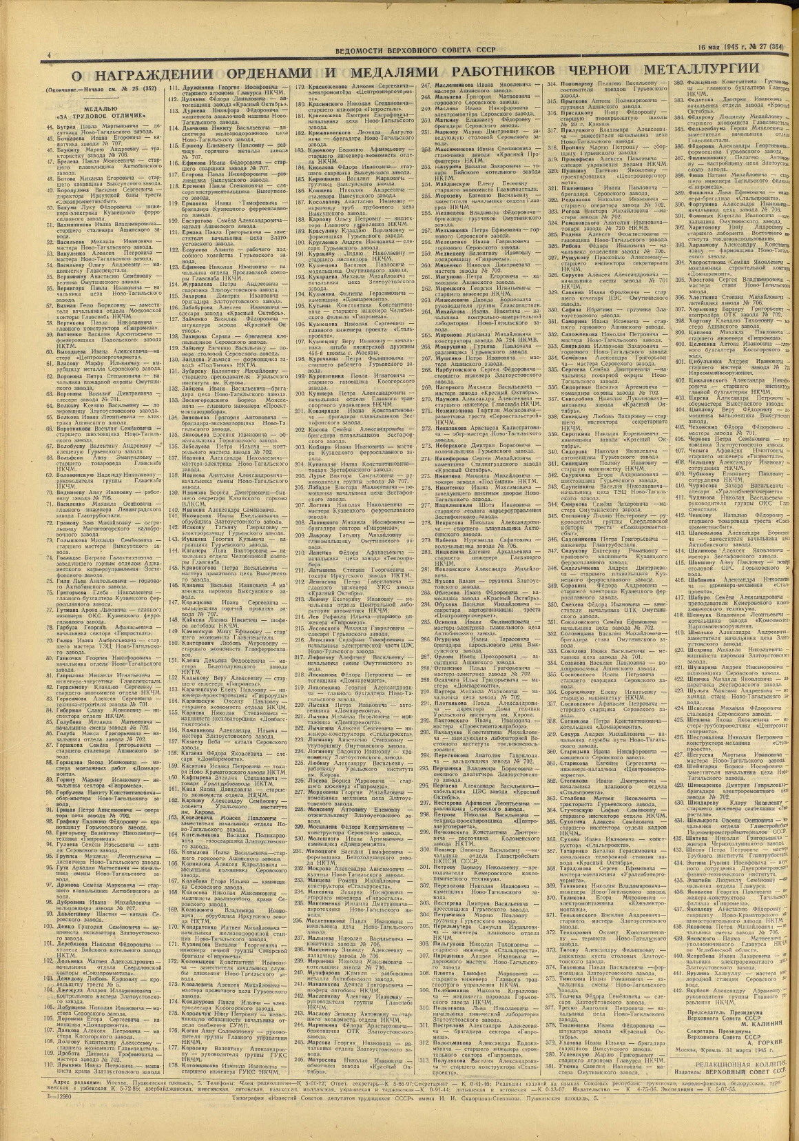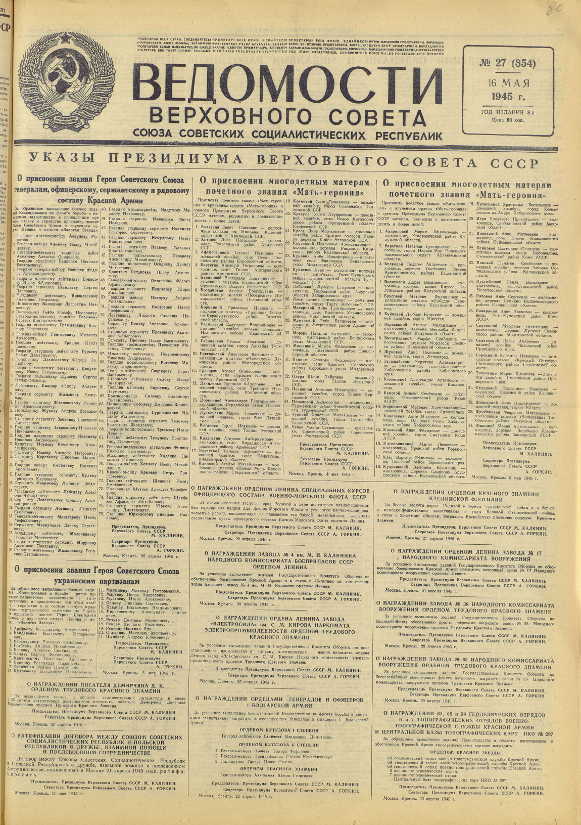 Ведомости Верховного Совета СССР от 16 мая 1945 года