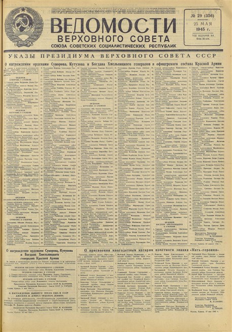 Ведомости Верховного Совета СССР от 25 мая 1945 года