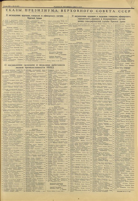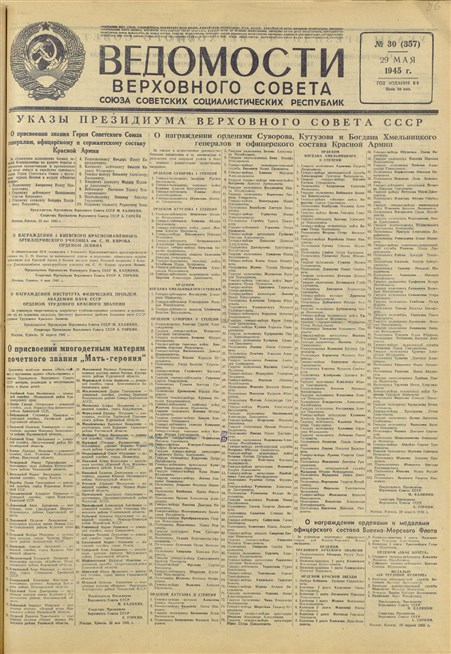 Ведомости Верховного Совета СССР от 29 мая 1945 года