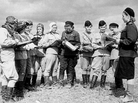 Группа летчиц 46-го гвардейского легкобомбардировочного полка им. М.М. Расковой. Кубань, 1943 год.