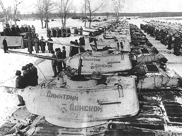 Танковая колонна «Димитрий Донской», построенная на средства прихожан Русской православной церкви. 1943 год.