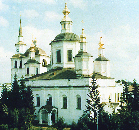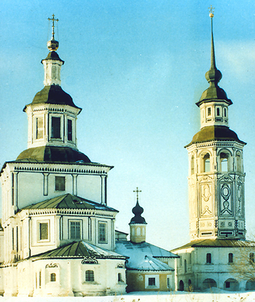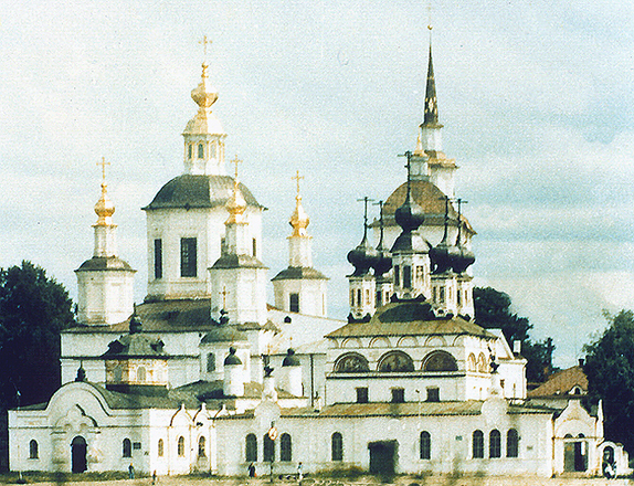 Великий Устюг. Соборное дворище. 17-18 века. В панораме города со стороны реки доминирует соборные комплекс, получивший название Соборного дворища. Вместе с бывшим архиерейским домом он занимает целый квартал.