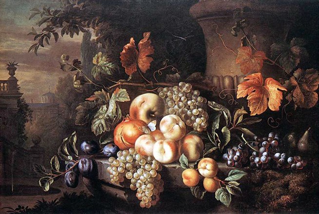 Якоб Богдани. Фрукты в каменной вазе. Конец 17 - нач. 18 вв.