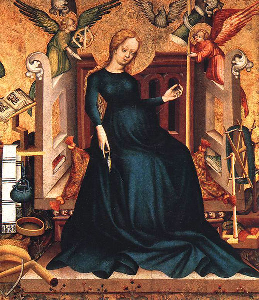 Икона. Пресвятая дева с прялкой. 1420-1430.