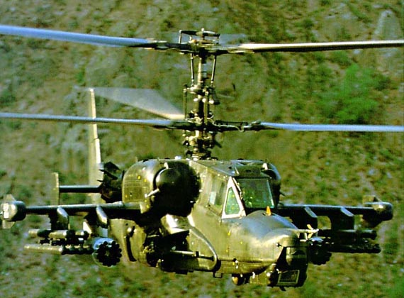 Ка-50 «Черная акула». Боевой одноместный ударный вертолет, прдназначен для поражения бронетанковой и мотомеханизированной техники без входа в зону действия воздушных целей и живой силы на поле боя