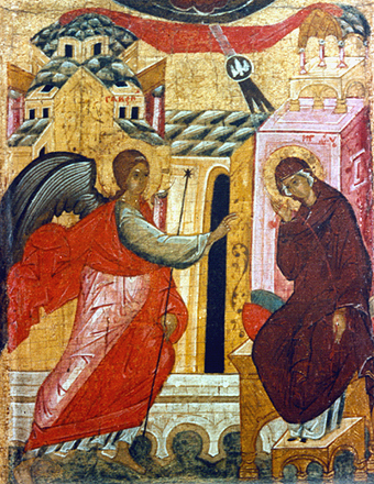 Владимиро-суздальская школа. Благовещение. Икона из Покровского монастыря в Суздале. Вторая половина 15 века. Собрание Владимиро-суздальского музея-заповедника.