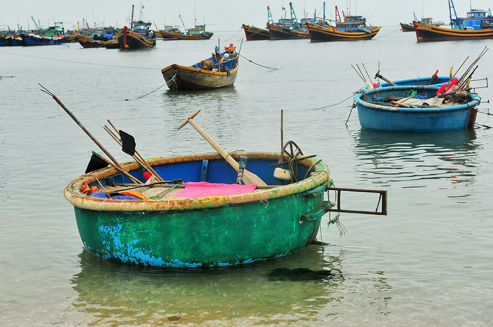Круглая рыбацкая лодка тхунгчай из бамбуковых прутьев. Муйне. Провинция Биньтхуан, Вьетнам. 2014 год. Фото Руслана Булатова