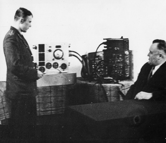 Юрий Гагарин сдает экзамен Сергею Королеву по системам управления корабля «Восток».