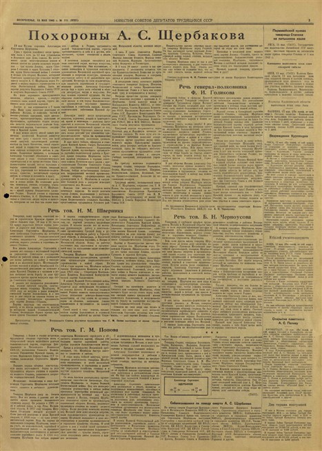 Газета «Известия» от 13 мая 1945 года