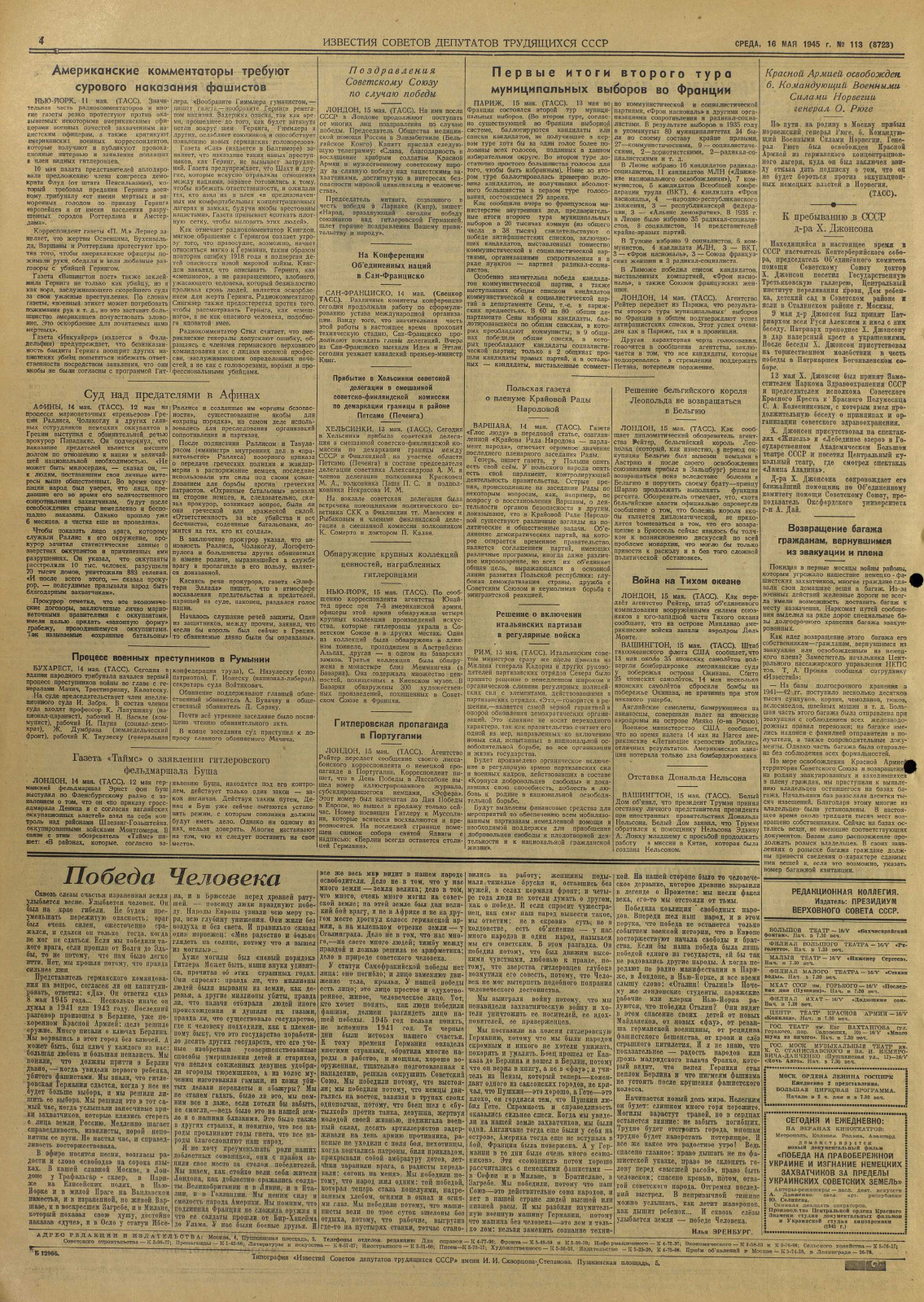 Газета «Известия» №113 от 16 мая 1945 года (страница 4)