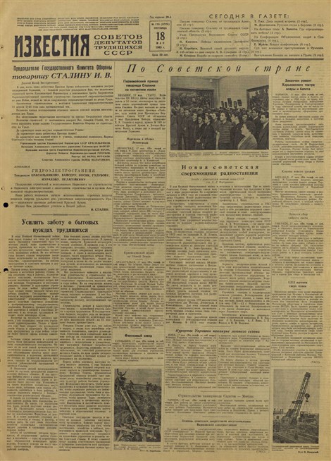 Газета «Известия» от 18 мая 1945 года