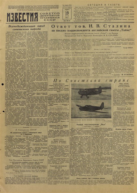 Газета «Известия» от 19 мая 1945 года