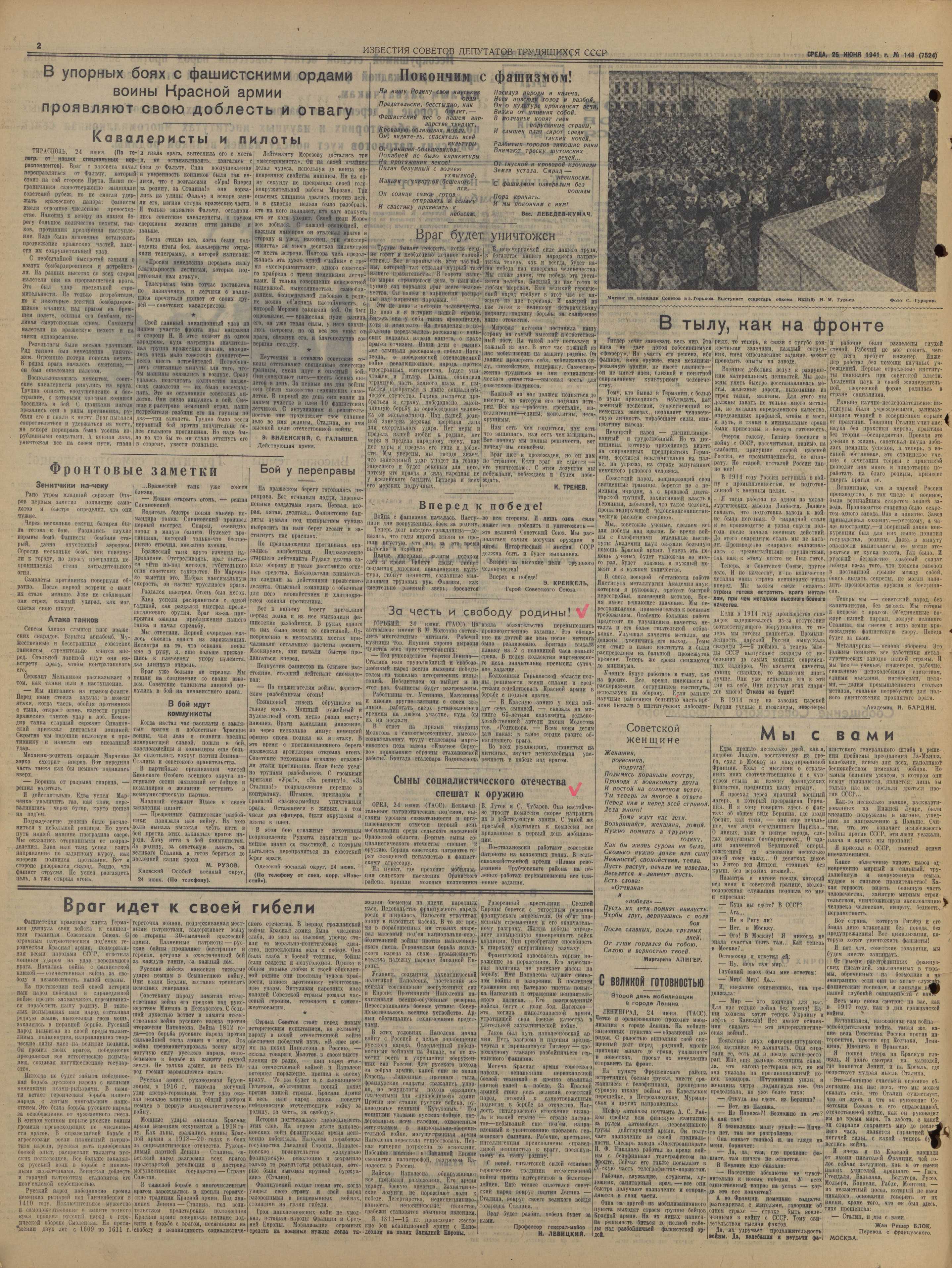 Газета «Известия» от 25 июня 1941 года (страница 2)