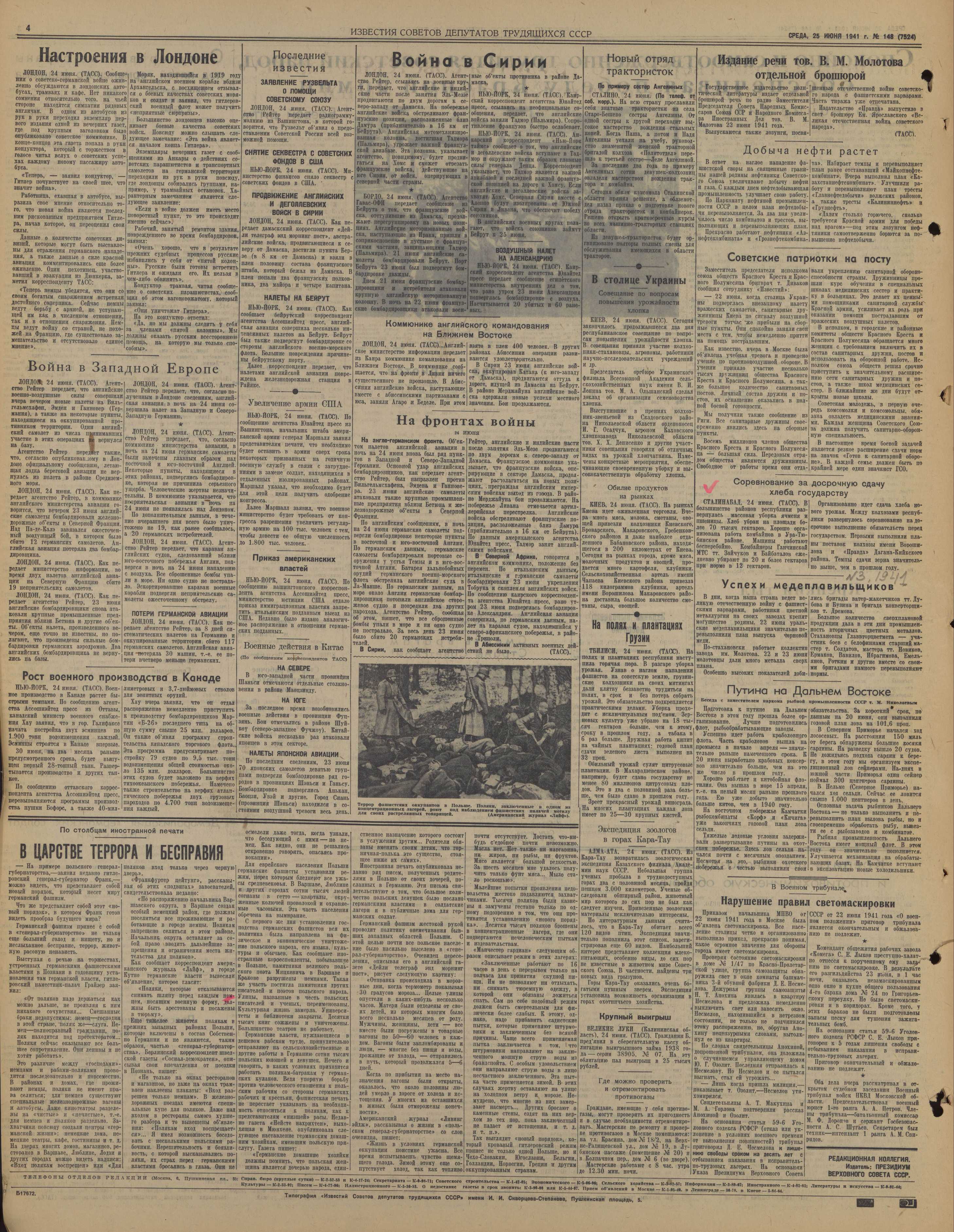 Газета «Известия» от 25 июня 1941 года (страница 4)