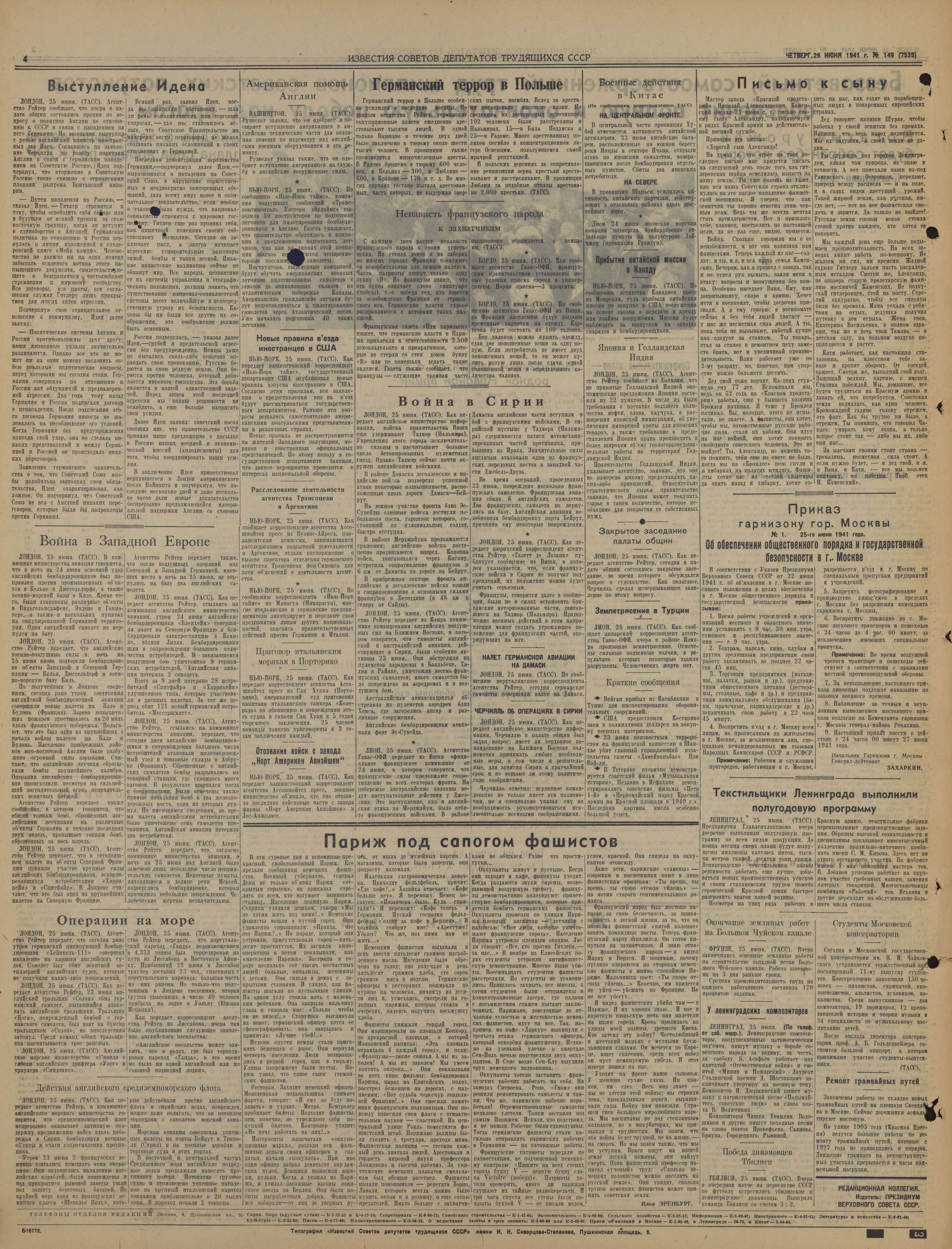 Газета «Известия» от 26 июня 1941 года (страница 4)