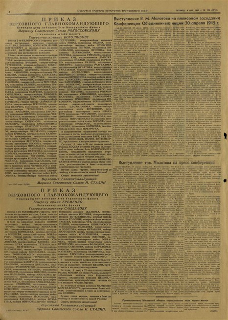 Газета «Известия» от 4 мая 1945 года