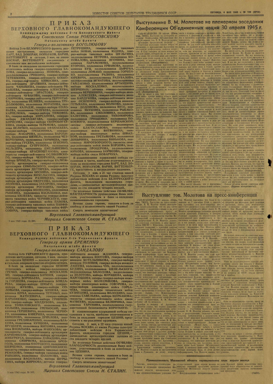 Газета «Известия» №103 от 04 мая 1945 года (страница 2)