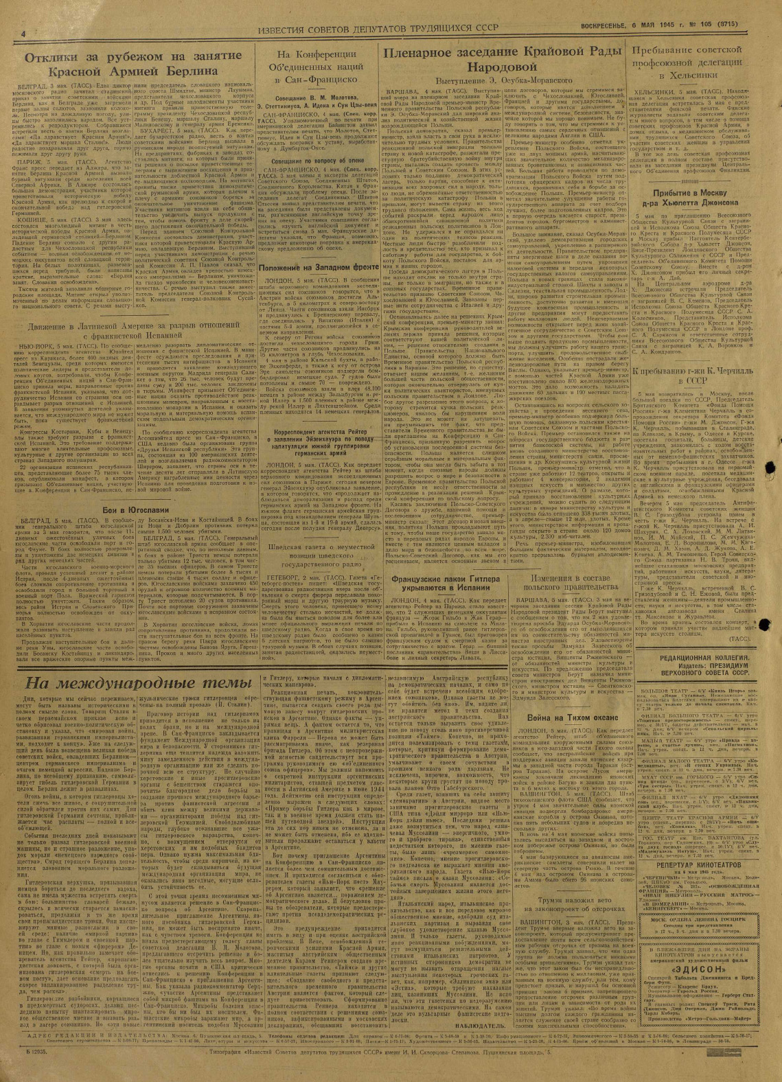 Газета «Известия» №105 от 06 мая 1945 года (страница 4)