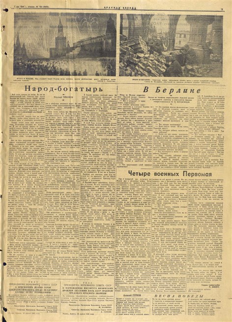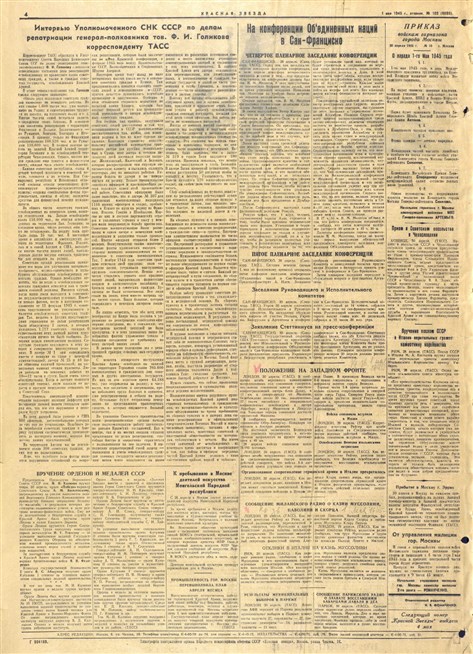 Газета «Красная Звезда» №102 от 01 мая 1945 года (страница 1)