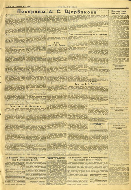 Газета «Красная Звезда» от 13 мая 1945 года