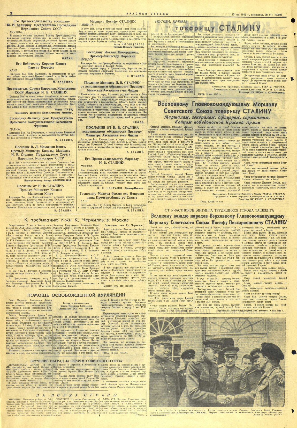 Газета «Красная Звезда» №111 от 13 мая 1945 года (страница 1)