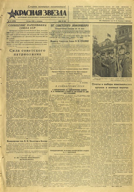 Газета «Красная Звезда» №112 от 15 мая 1945 года (страница 1)