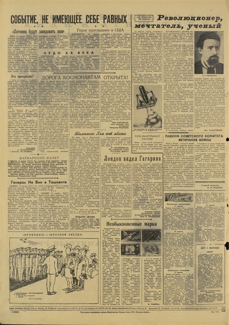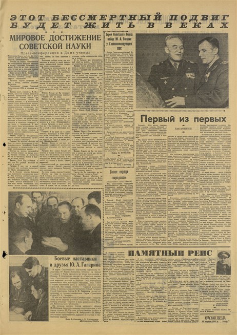Газета «Красная Звезда» от 16 апреля 1961 года.