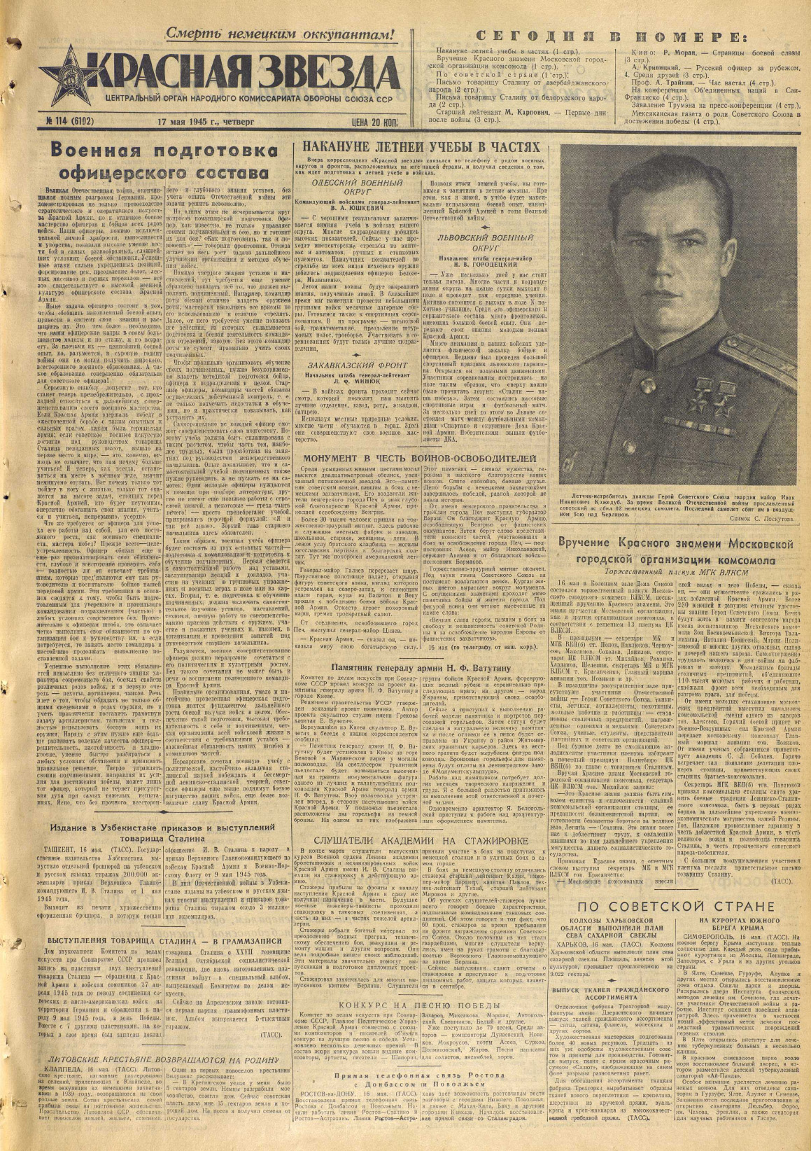 Газета «Красная Звезда» №114 от 17 мая 1945 года (страница 1)