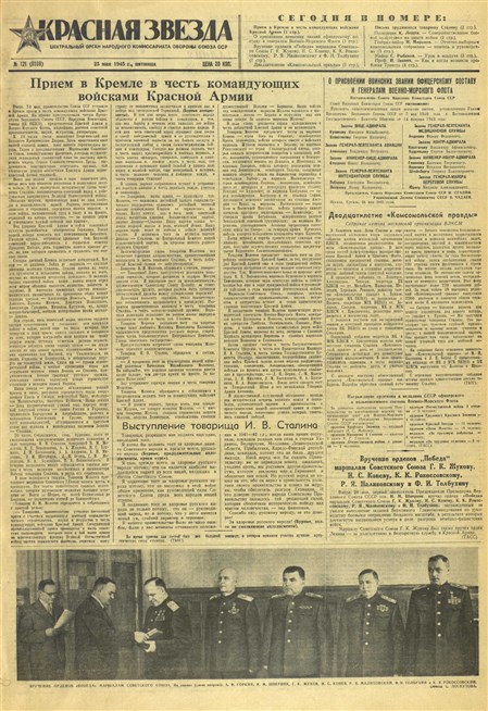 Газета «Красная Звезда» №121 от 25 мая 1945 года (страница 1)