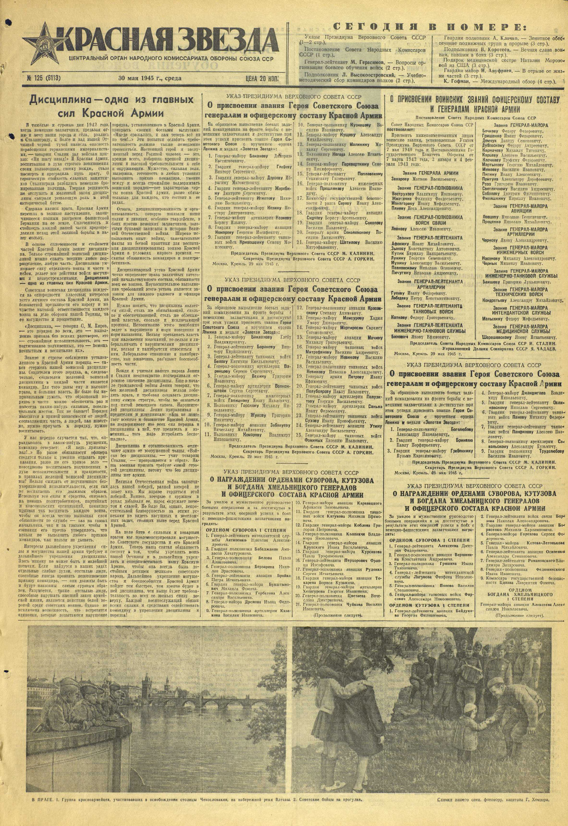 Газета «Красная Звезда» №125 от 30 мая 1945 года (страница 1)